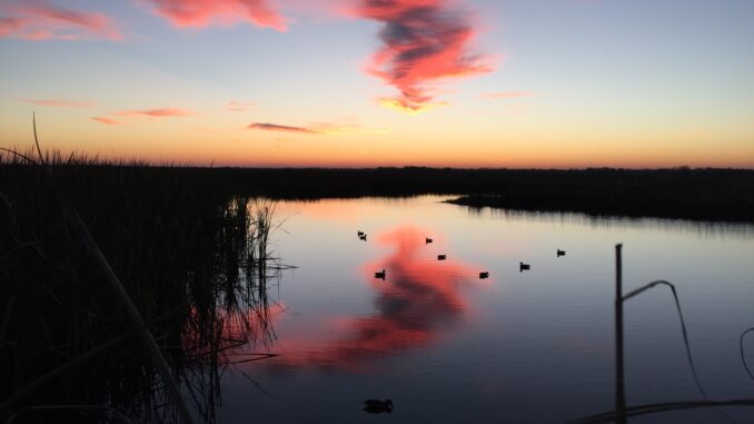 Cool clear morning. Reflection on the old duck pond of GODS canvas.Pecan Island Louisiana. Ducks Forever!