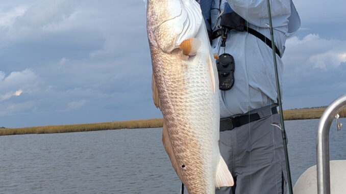 What a fight! It took quite a while to get this one in. I was fishing with cut crab on the bottom in the marsh around Catfish lake.