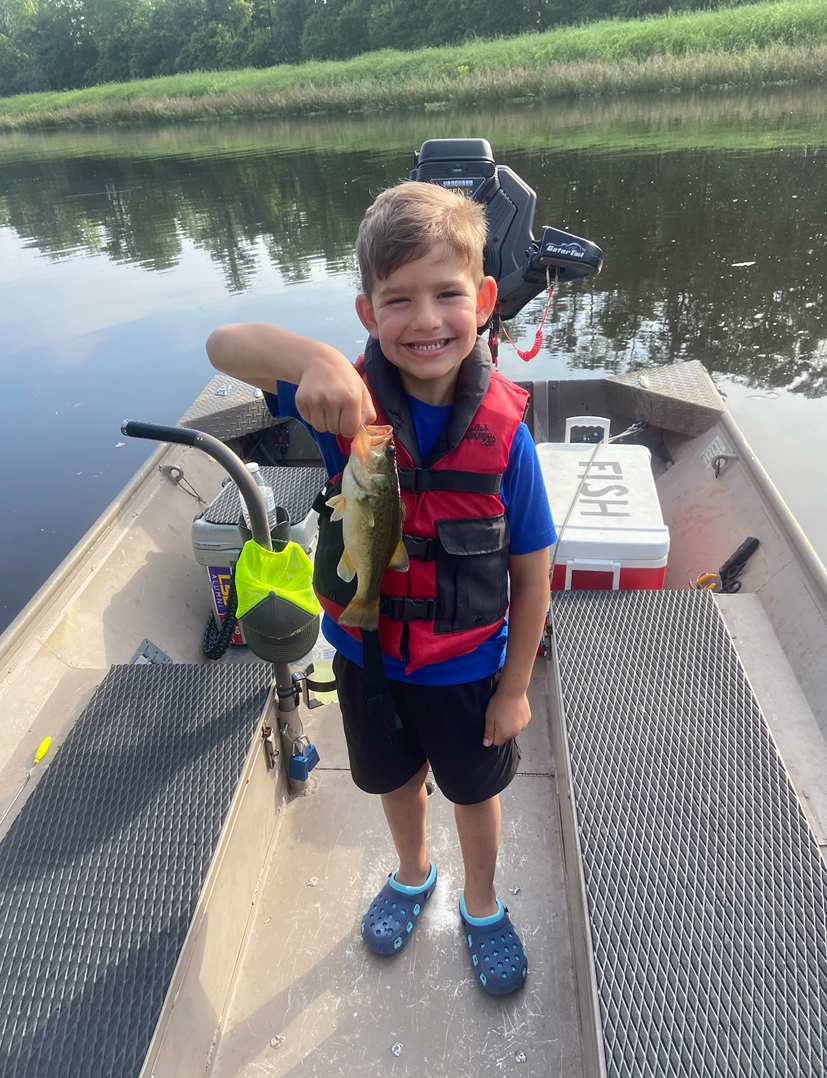 Took my son fishing close to the house not expecting to catch anything except a few bream. Ended up with a bass!! He was surprised!