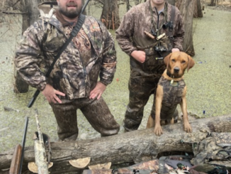 My husband Mike, oldest son Bobby and Dan the lab. One of the first hunts the dog made. My son trained him on his own after reading the book “Gun Dog”