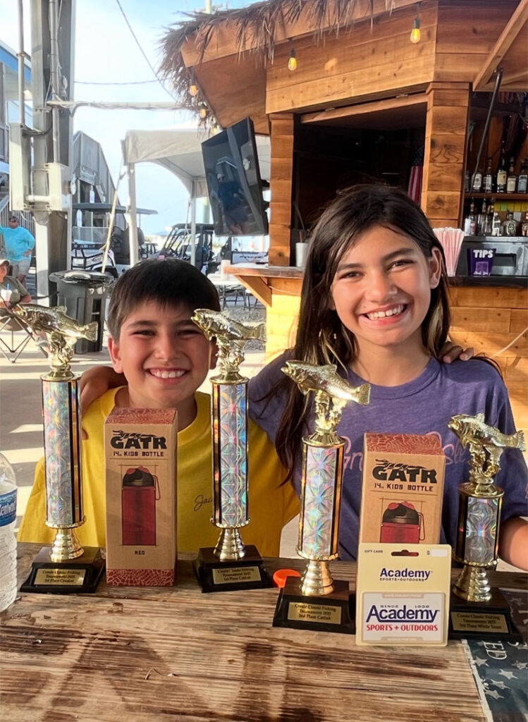 Finally, we were able to take our grandkids to Grand Isle for their first time. Entered them in a fishing rodeo at Bridge Side and they both won trophies in a few different categories along with some fun door prizes. Needless to say, they are now ”Hooked on Fishing”..
