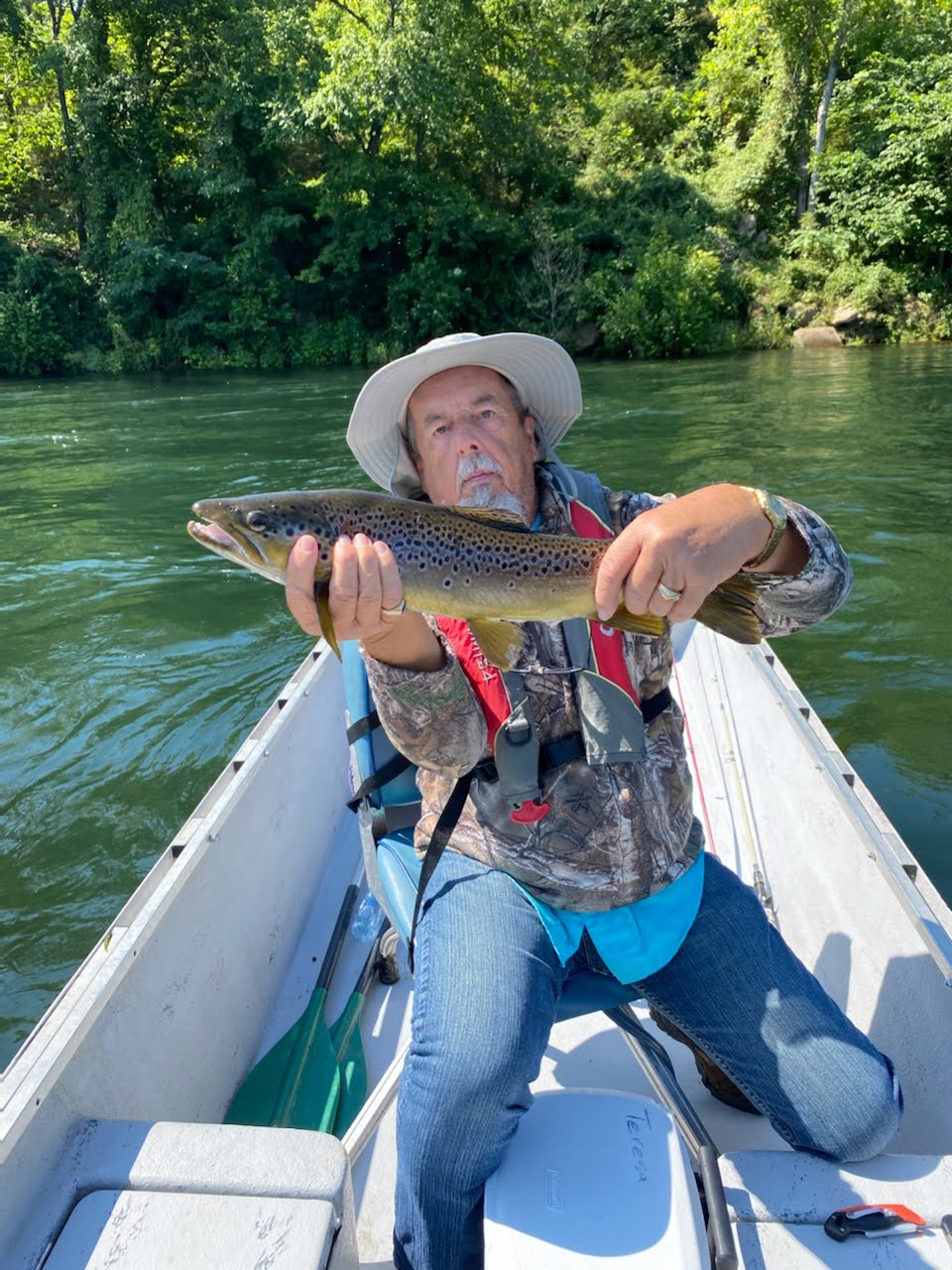 14 days camping to Yellowstone out of the bed of a Jeep. Stopped at Bull Shoals White River. Brown Trout.