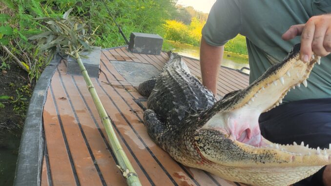 Campground in Morgan city lake end caught with rod and reel on the bank.