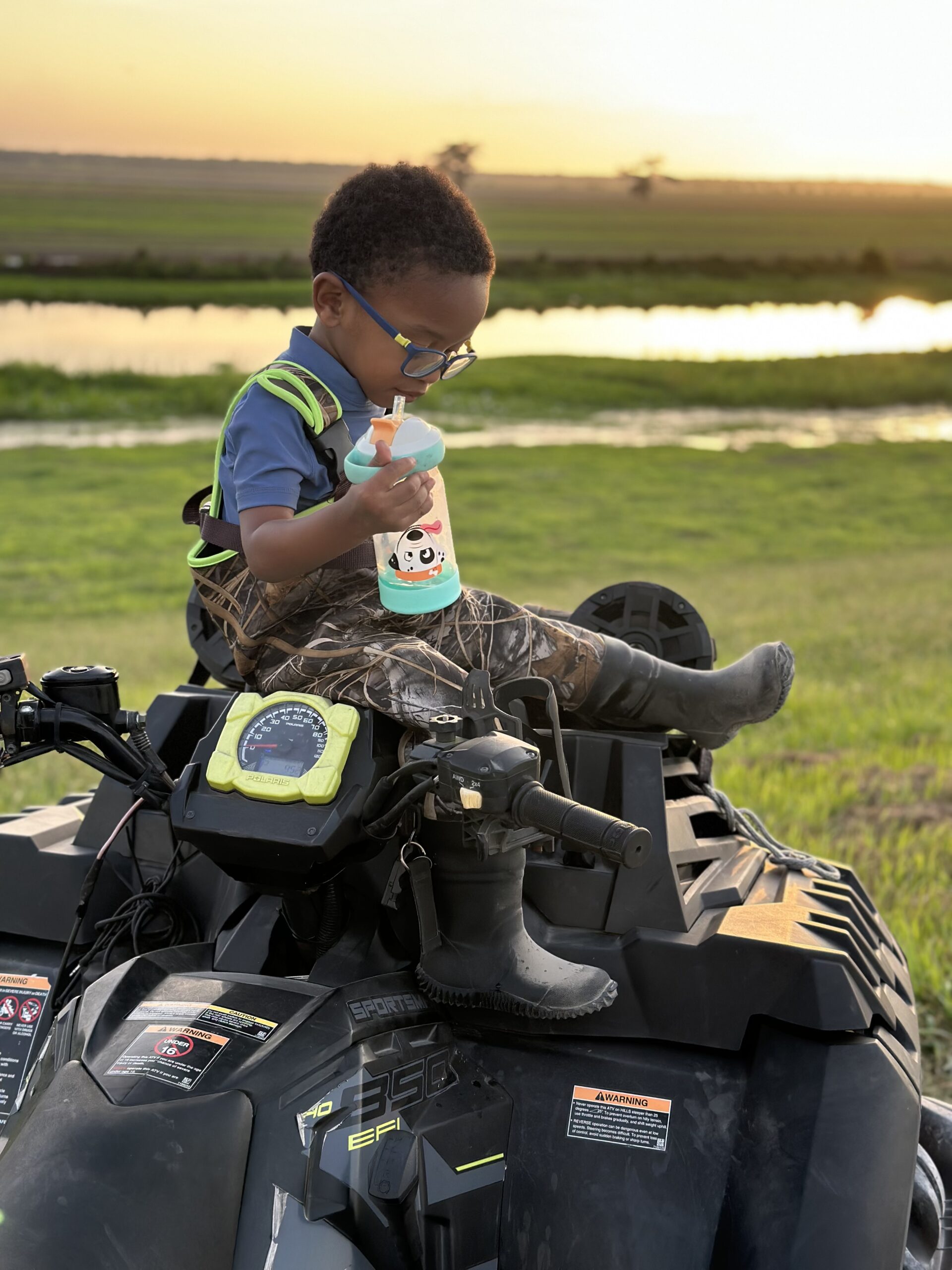 My son Walter Howard III, enjoying his juice while sitting and watching the sunset on the levee.