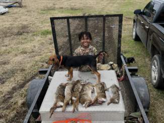 My son Coby James jr was on his first rabbit hunt of the season. He’s so happy holding his dog Rosco!!