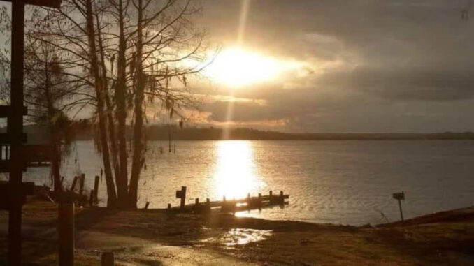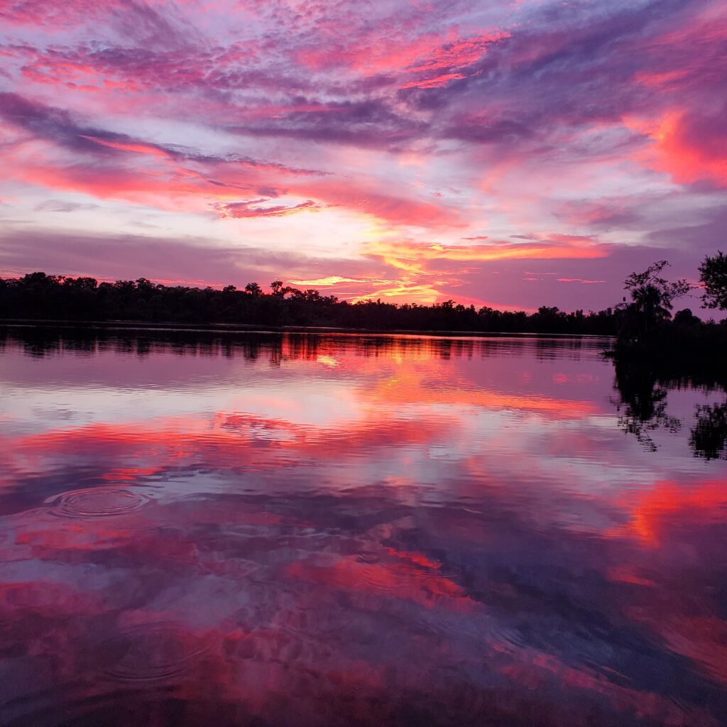 Took from my deck at my camp on lake Des Allemands in the evening .