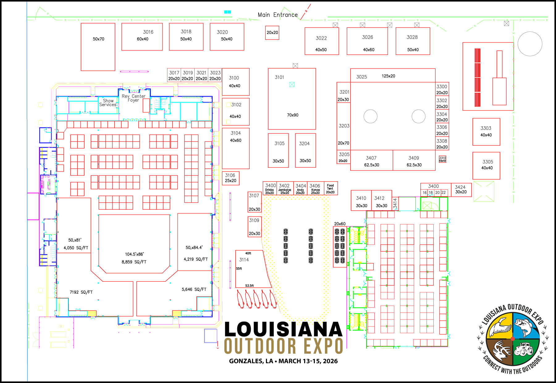 The Spring show in Gonzales Louisiana will be held at the Lamar Dixon Expo Center. Occupying the REV Center, Trade Mart building and the space surrounding the building.