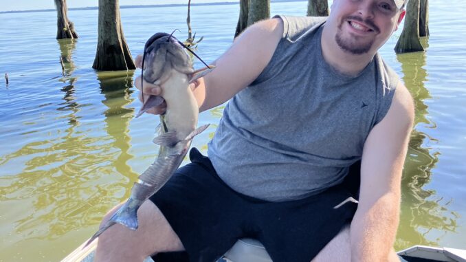 Campground in Morgan city lake end caught with rod and reel on the bank.